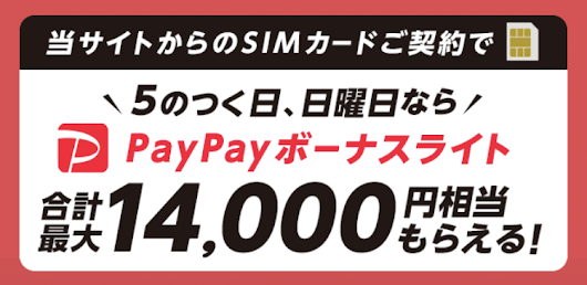 「5のつく日」と「日曜日」の申し込みで、最高額のPayPay14,000円相当がもらえます。