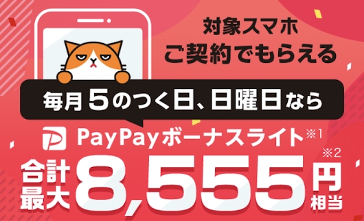 【ワイモバイルのキャンペーン】5のつく日と日曜日を狙え!PayPayを大量ゲットしよう!